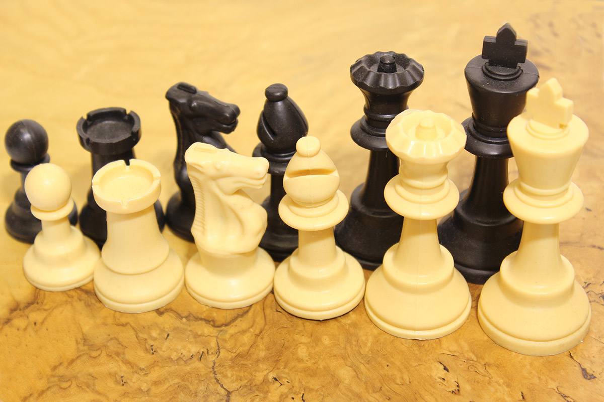 Πιόνια τουρνουά πλαστικά με ύψος βασιλιά 9,5 cm, με εσωτερικό βαριδάκι (3/3) και με τσόχα στη βάση για την προστασία της σκακέρας.
