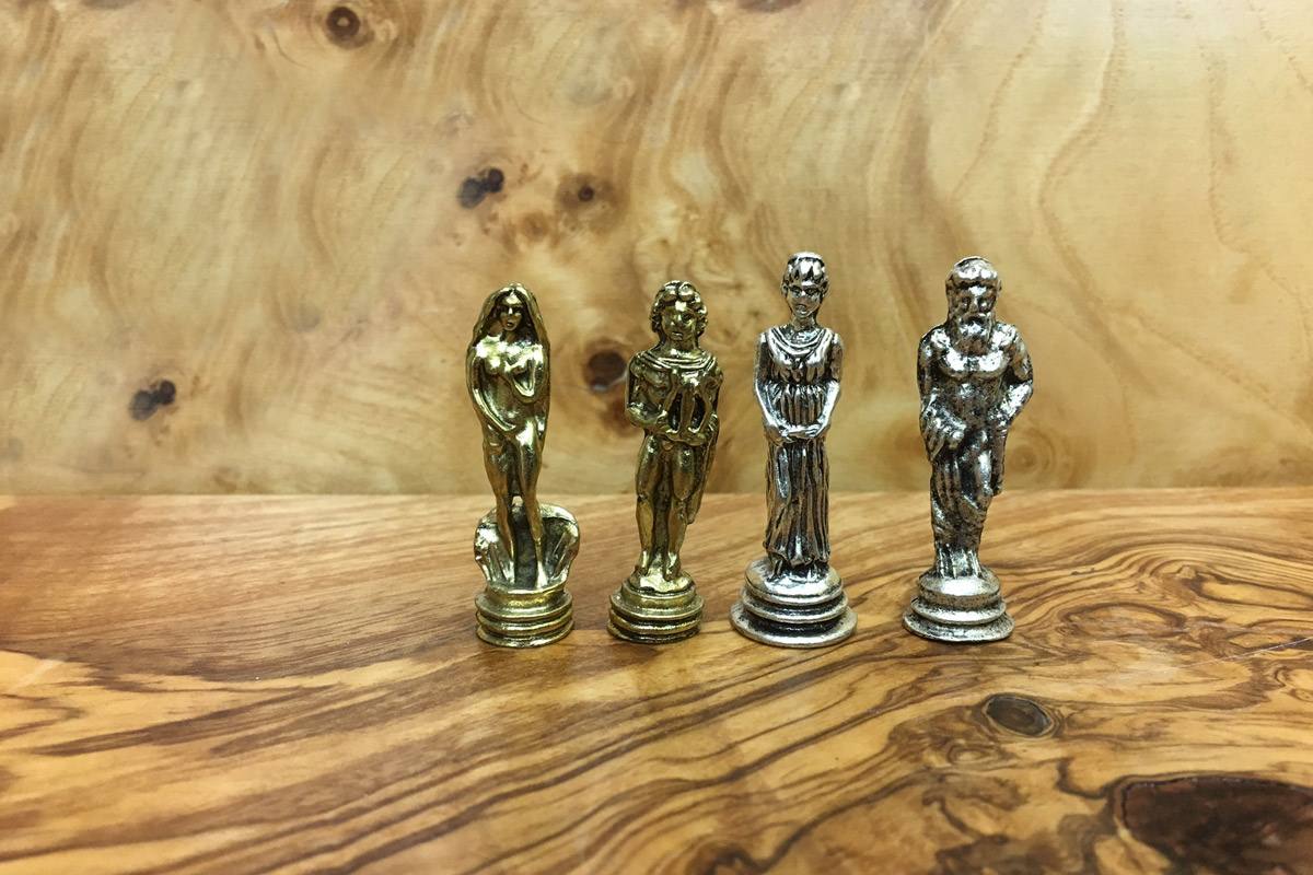 Πρόκειται για μια σκακιέρα χειροποίητη, μεταλλική με σμάλτο σε διάφορα χρώματα, και μεταλλικά πιόνια με θεματολογία τους Δώδεκα Θεούς. Η σκακιέρα είναι ενσωματωμένη στο πάνω μέρος της κασετίνας και τα πιόνια αποθηκεύονται μέσα σε βελουτέ θήκες. Επίσης παραλαμβάνεται ειδική τσάντα μεταφοράς.