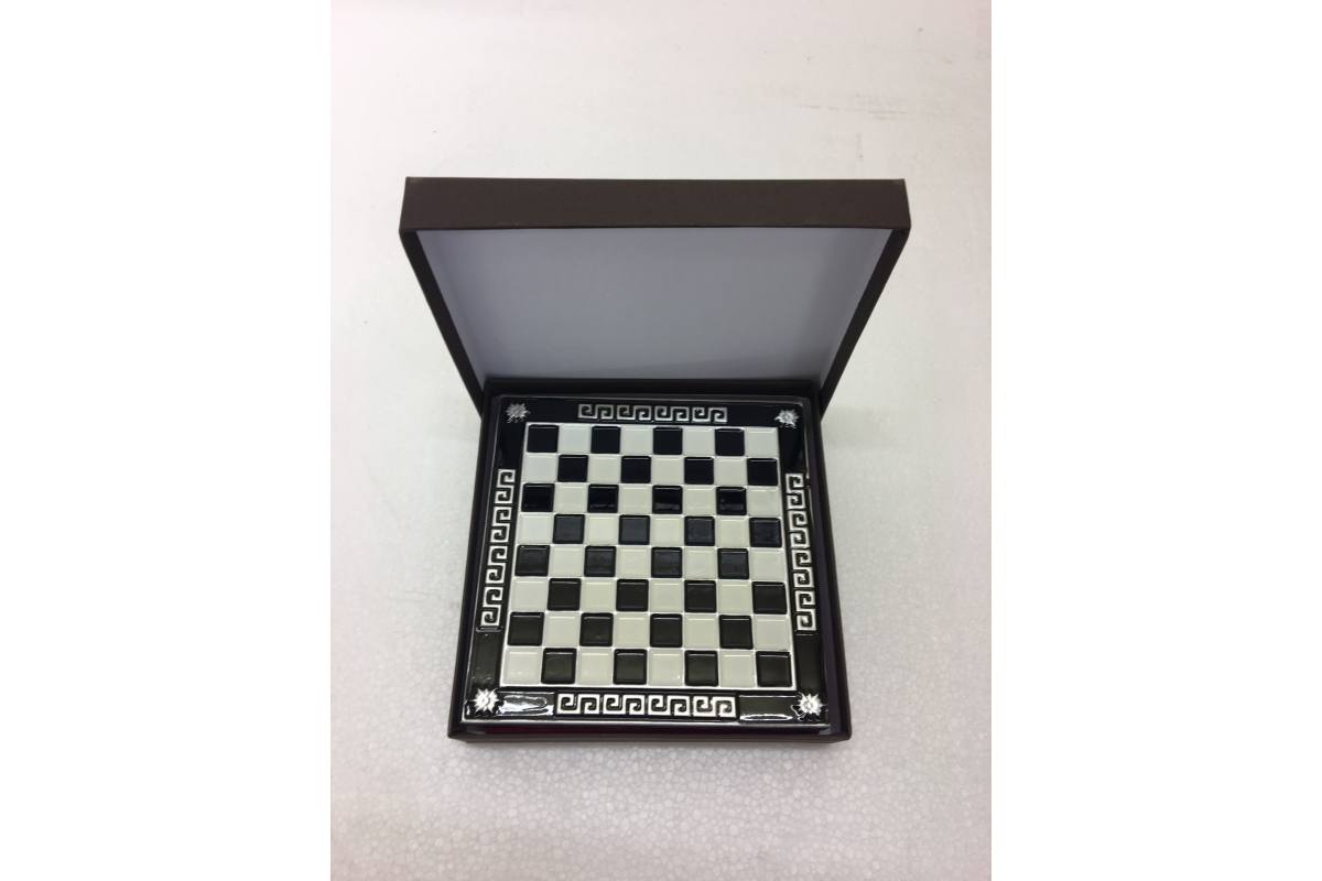 Πρόκειται για μια σκακιέρα χειροποίητη, κεραμική με ανάγλυφη θεματολογία τον Τρωικό Πόλεμο και κεραμικά πιόνια χειροποίητης βαφής.
