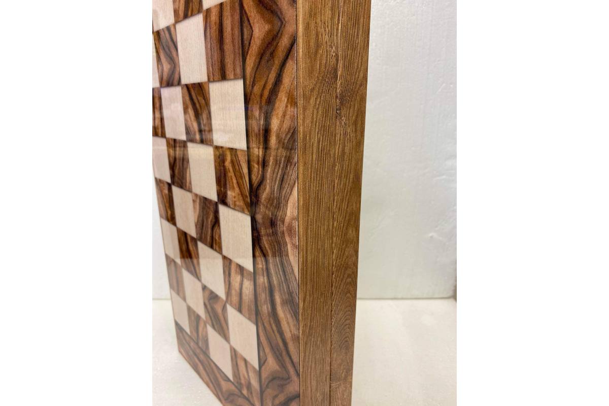Το συγκεκριμένο τάβλι - σκάκι καρυδιάς είναι κατασκευασμένο στο χέρι, από ένθετα κομμάτια ξύλου ελιάς και Wenge. Το χρώμα δεν είναι στην επιφάνεια, αλλά στη μάζα του ξύλου. Το φινίρισμα γίνεται με την ένωση κομματιών φυσικού ξύλου, όπου στο τελείωμα της διαδικασίας, εφαρμόζεται βερνίκι φούρνου, για τη διατήρηση του ξύλου. Στη βασική του έκδοση,...