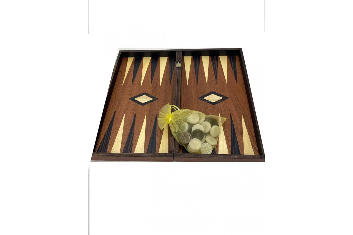Πρόκειται για ένα τάβλι-σκάκι από ξύλο καρυδιάς με προσεγμένες λεπτομέρειες τόσο εσωτερικά όσο και εξωτερικά. Μετά την επεξεργασία επικαλύπτεται από τρεις στρώσεις λάκκα βερνίκι για την καλύτερη διατήρηση του σχεδίου. Στην τιμή συμπεριλαμβάνονται πούλια τύπου φίλτεσι και ζάρια καθώς και μία ειδική, υφασμάτινη τσάντα για την προστασία και μεταφορά του...