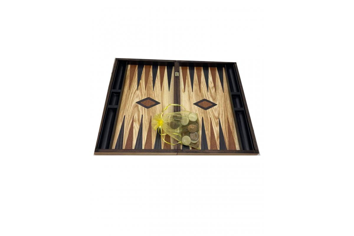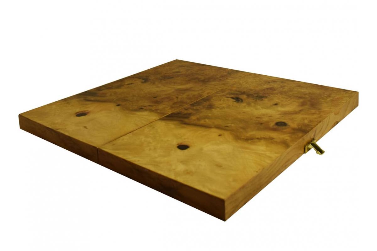 Το συγκεκριμένο τάβλι καρυδιάς είναι κατασκευασμένο στο χέρι, από ένθετα κομμάτια ξύλου ελιάς και Wenge. Το χρώμα δεν είναι στην επιφάνεια, αλλά στη μάζα του ξύλου. Το φινίρισμα γίνεται με την ένωση κομματιών φυσικού ξύλου, όπου στο τελείωμα της διαδικασίας, εφαρμόζεται βερνίκι φούρνου, για τη διατήρηση του ξύλου. Στη βασική του έκδοση, περιλαμβάνονται...