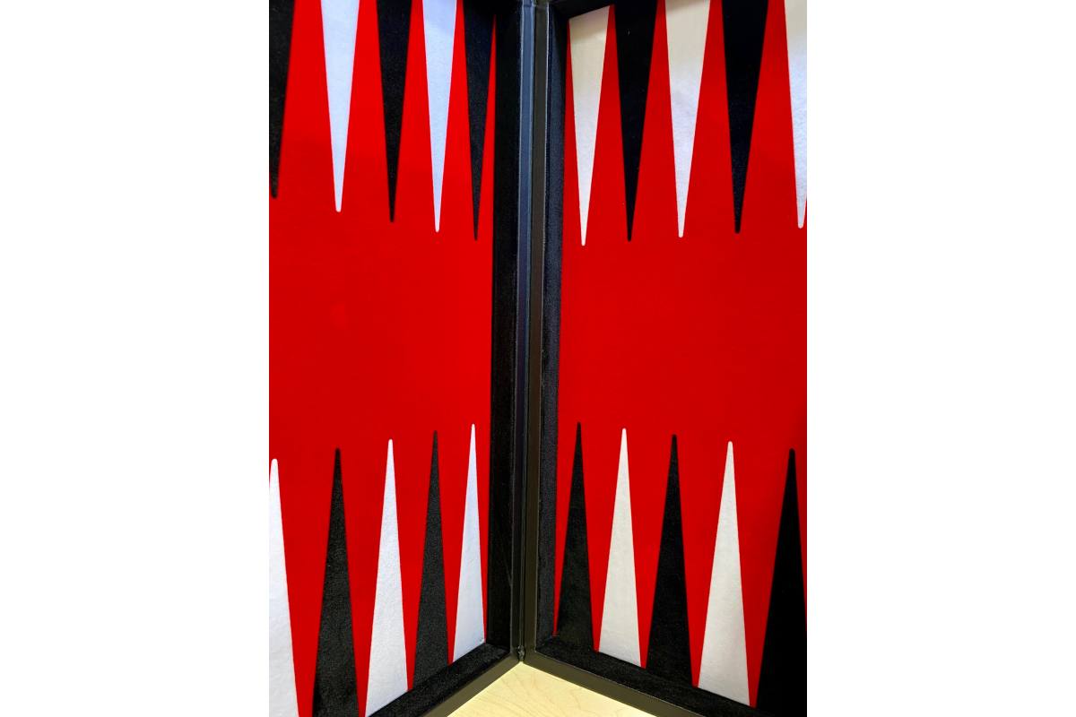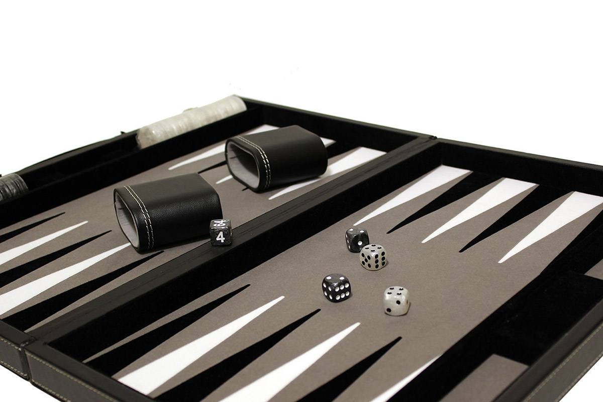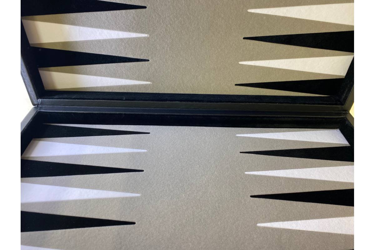 Πρόκειται για ένα δερμάτινο τάβλι εξωτερικά, με βελούδινη επένδυση εσωτερικά και θήκες για την αποθήκευση για τα πούλια αριστερά και δεξιά.